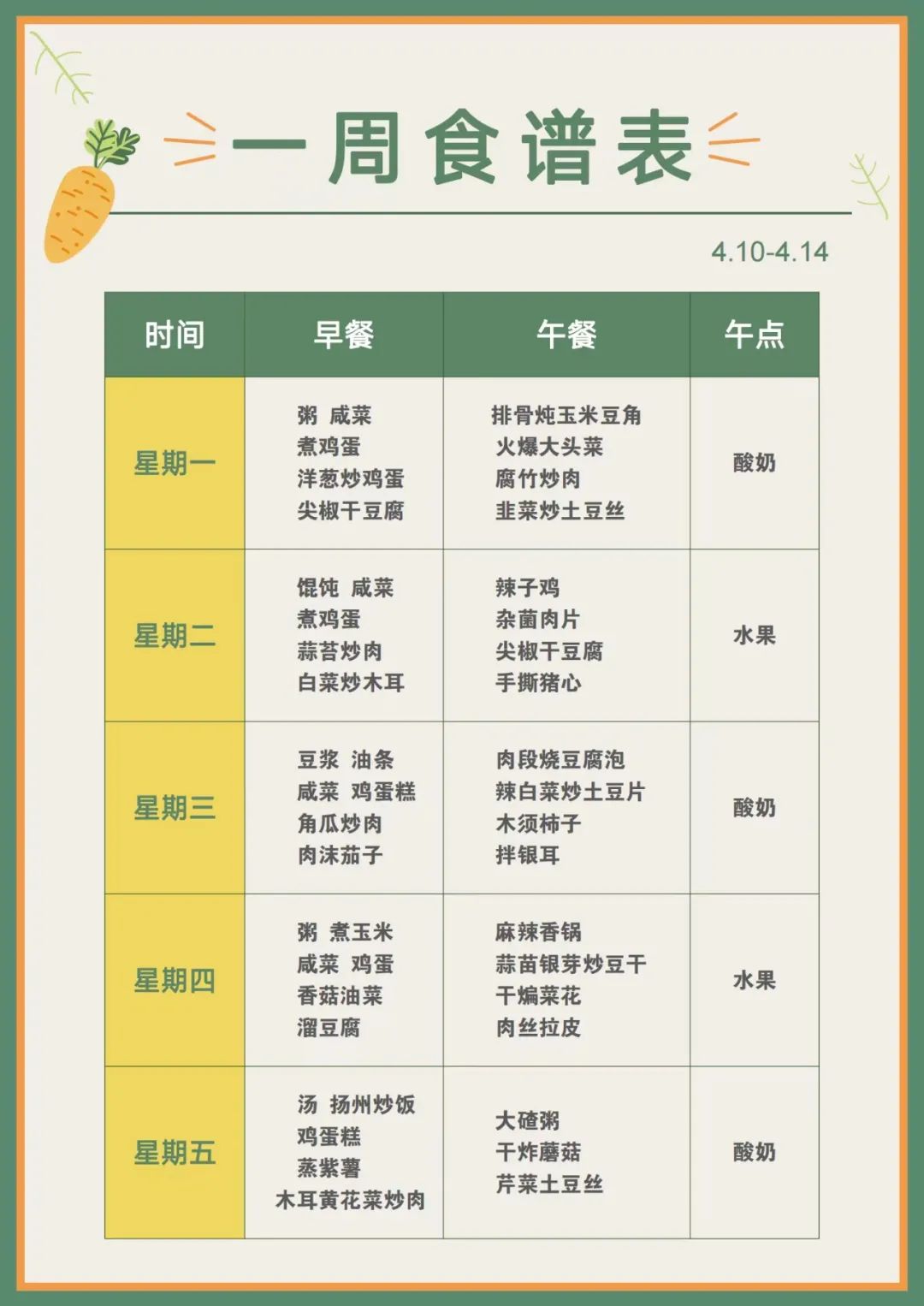 【章中“食”光】章中集团第10周菜谱(4.10-4.14)
