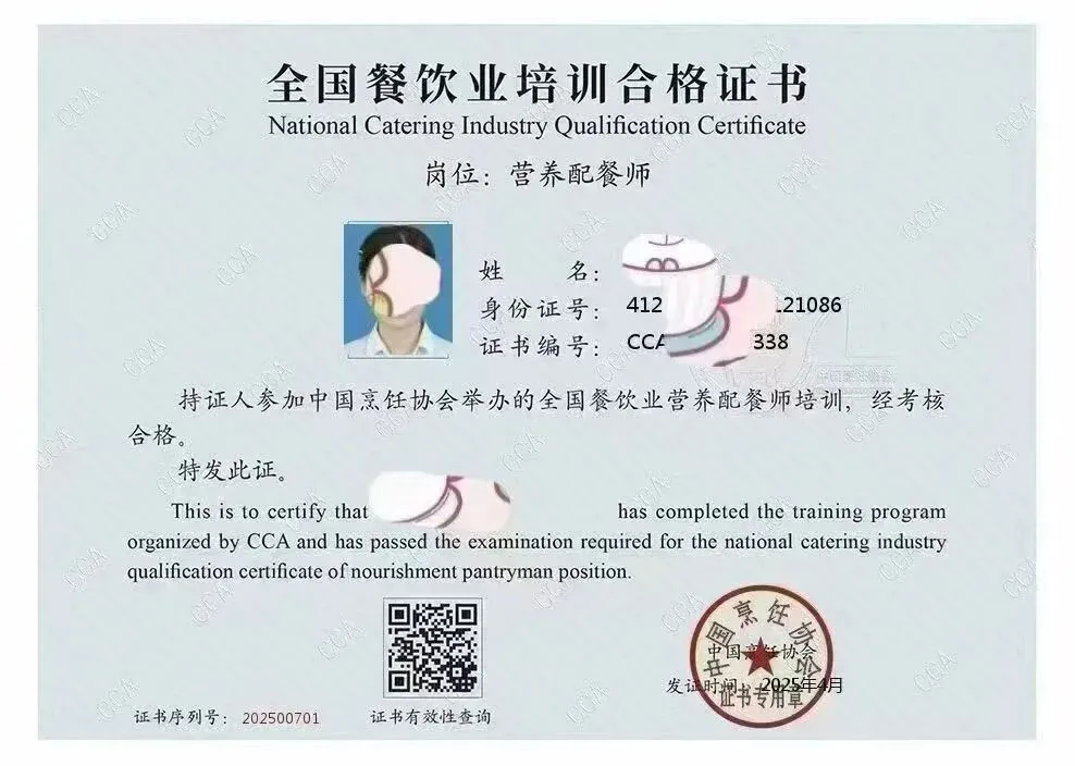 3. 全国通认通用,跨城发展无限制:证书无地域限制,在全国范围内均被餐饮行业认可。不管是想从三四线城市到一线城市求职,还是跳槽到异地的连锁餐饮、高端酒店,这本证书都能成为你的“敲门砖”,跨城发展毫无阻碍。