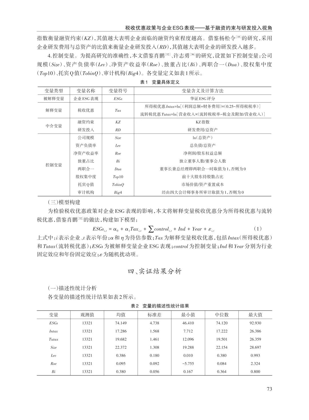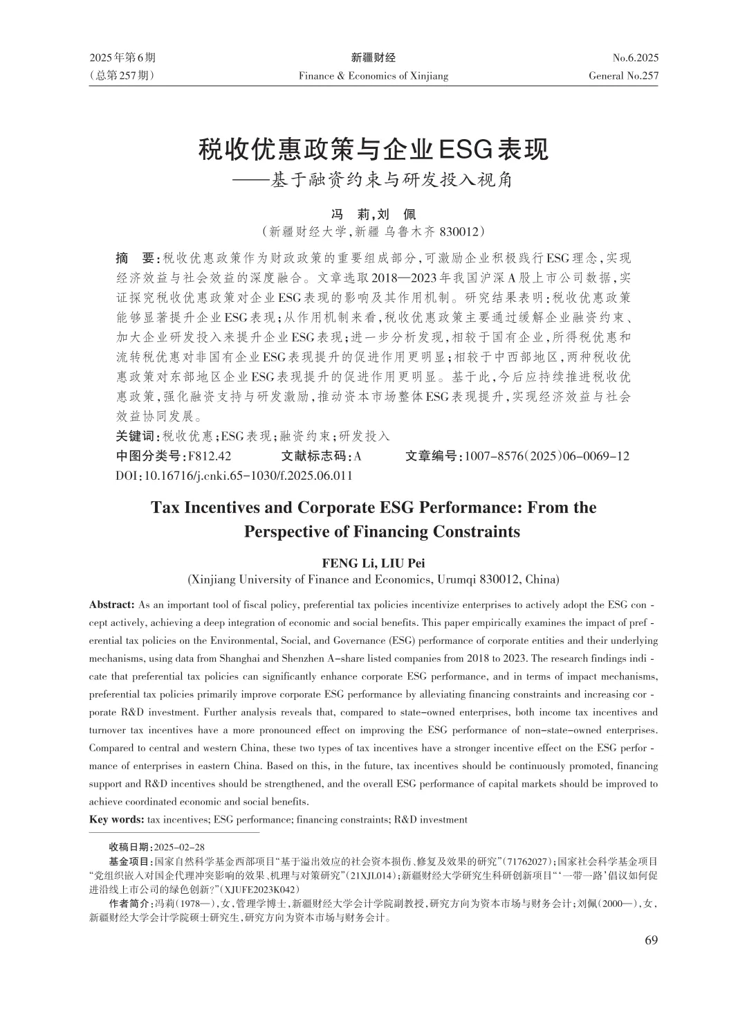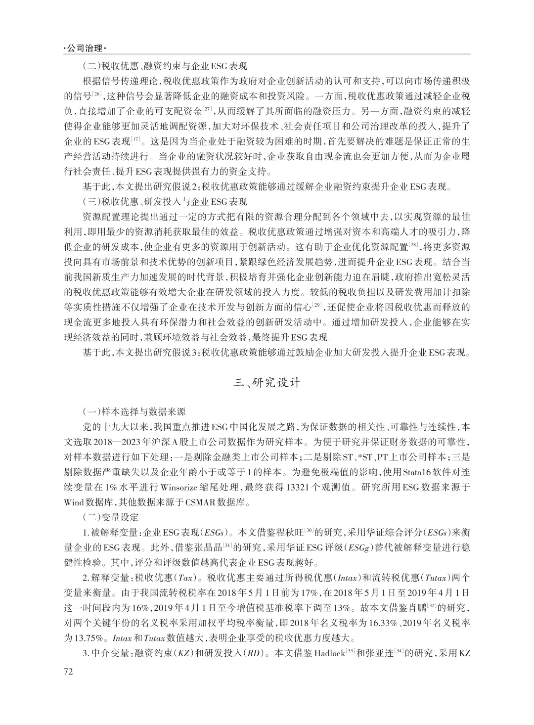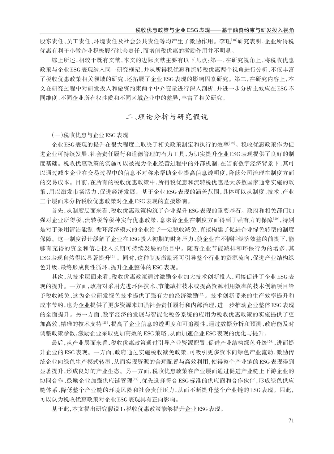 关键词:税收优惠;ESG表现;融资约束;研发投入
