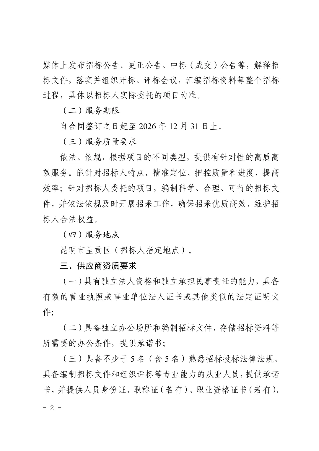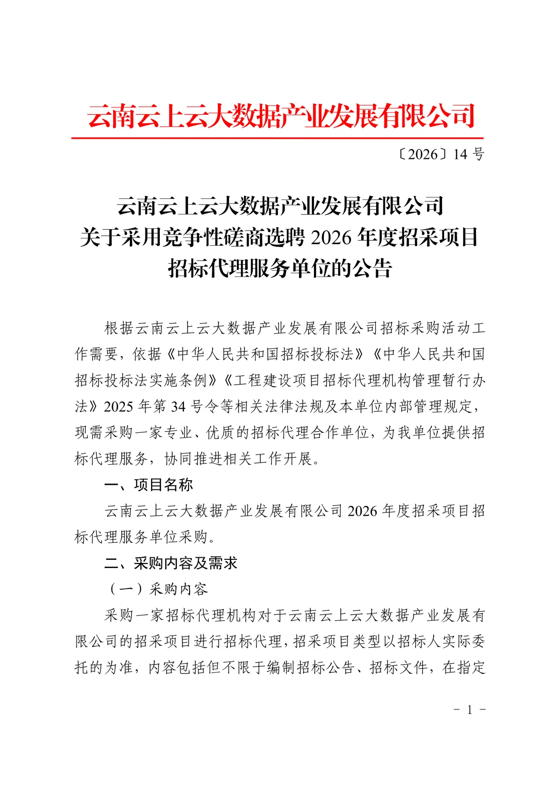 云南云上云大数据产业发展有限公司关于采用竞争性磋商选聘2026年度招采项目代理服务单位的公告