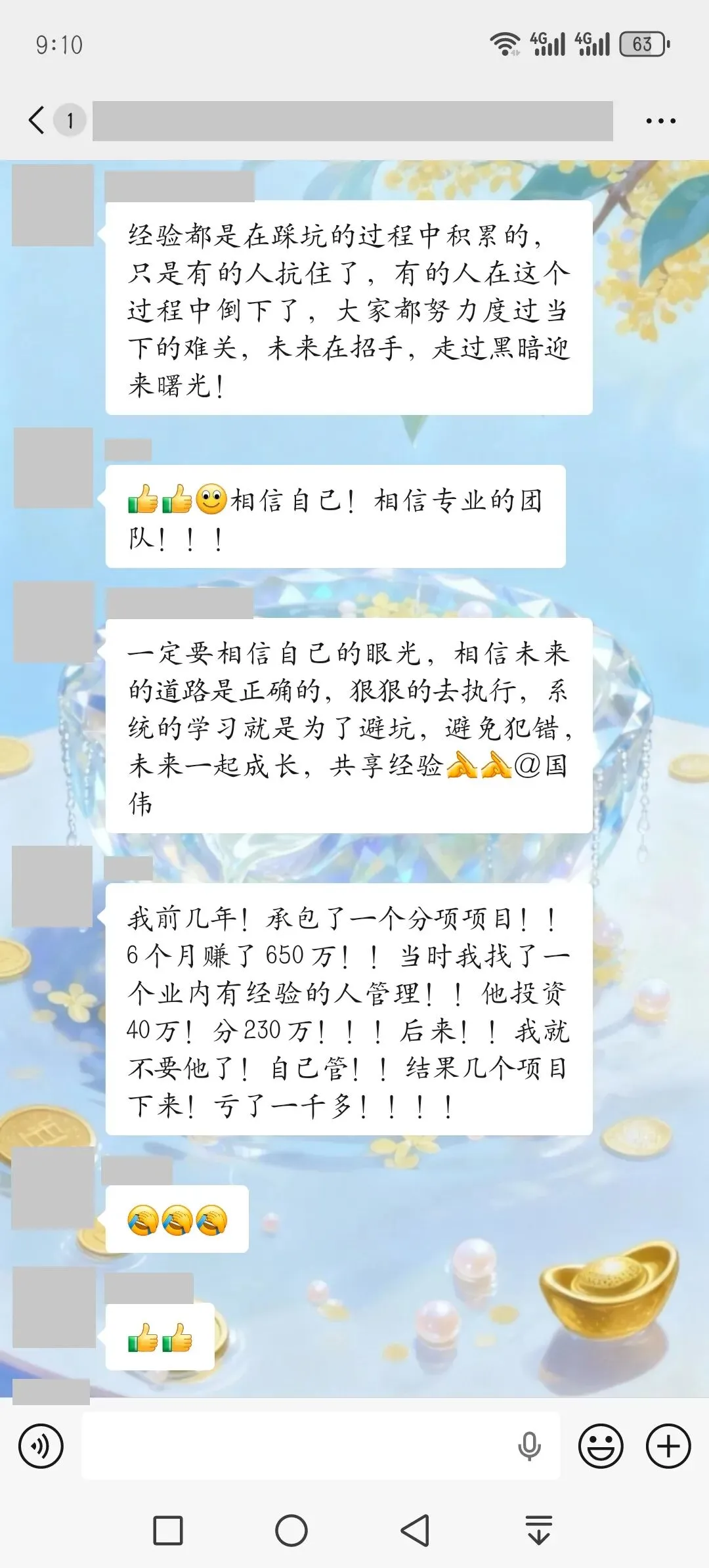 昨天晚上,在融企学员群里的一位老板分享了他曾经因为盲目自信,认知不足,从而生意失败,并且背上高额负债的故事,引起群里大多数老板的共鸣。