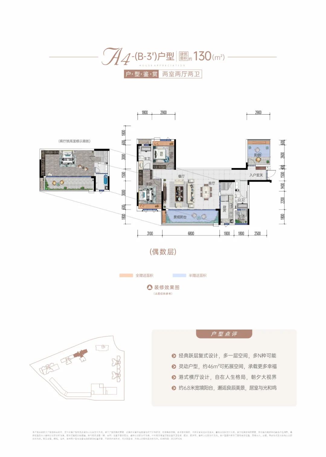 环幕新跃层,营造一处更高层次的私属之地,仰观天地之大,放怀自然逸趣,无尽奢容,犒赏当代成功人士的进阶生活。 热销户型