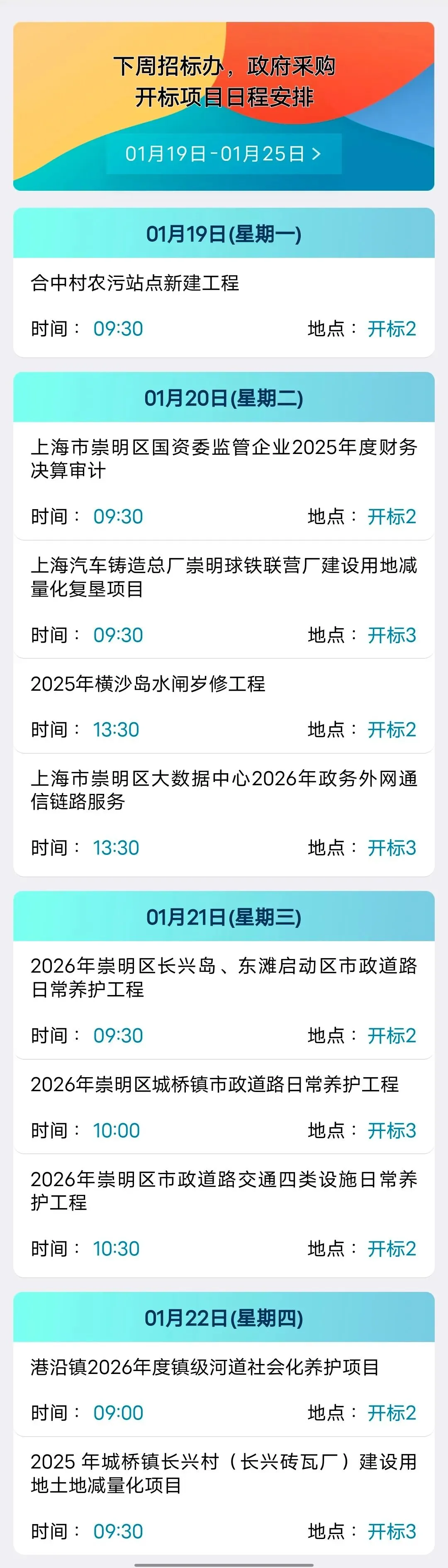 【日程安排】下周招标办、政府采购开标项目日程安排(1月19日-1月25日)