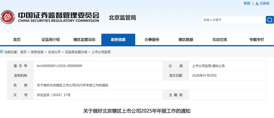 关于做好北京辖区上市公司2025年年报工作的通知