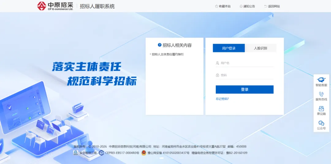 招标人主体责任履职系统全面上线是平台将国家《指引》核心要求转化为具体行动的关键举措,标志着在电子化赋能与责任制度化层面迈出坚实一步,推动招标采购从“程序合规”向“实质公正”迈进。作为省级信息化专项资金支持项目,中原招采平台将持续优化服务,致力构建开放有序、交易清晰的市场生态。