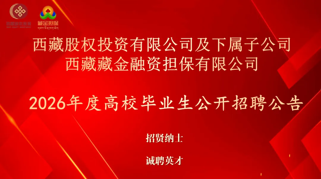 根据西藏股权投资有限公司及下属子公司西藏藏金融资担保有限公司发展战略,为切实增强人才队伍核心竞争力,满足业务快速增长对人才的需求,本着公平、公正、竞争、择优的原则,现面向2025年度、2026年度应届高校毕业生开展公开招聘工作,有关事项公告如下: