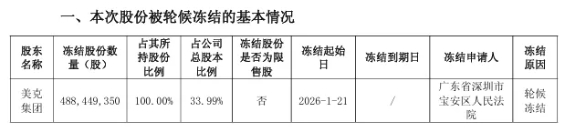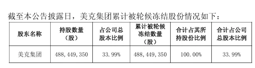 1月22日,美克国际家居用品股份有限公司(简称“美克家居”)发布公告,披露其控股股东美克投资集团有限公司(简称“美克集团”)所持有的全部公司股份已被轮候冻结。冻结股份数量为488,449,350股,占公司总股本的33.99%,占美克集团持股的100%。