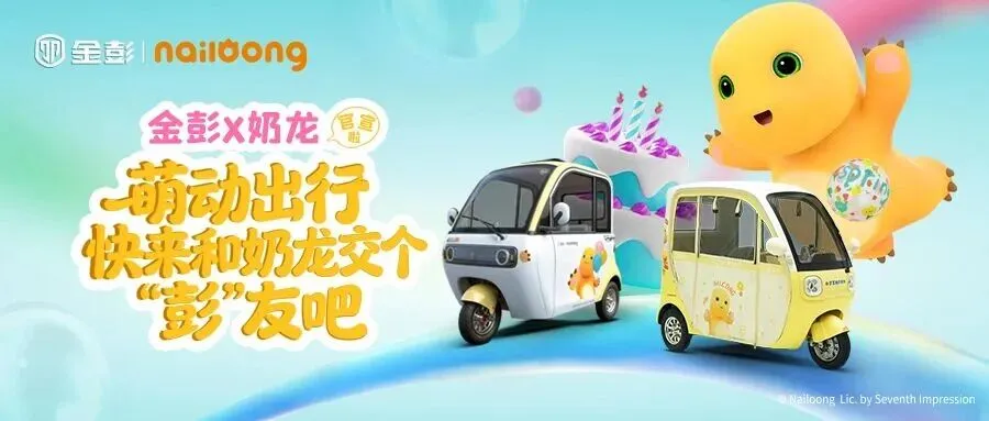 ⭕8、【金彭三轮与奶龙联名合作】近日,金彭三轮车与现象级国漫IP“奶龙”官宣联名合作。这一组合打破了传统电动三轮车行业的营销边界,借助奶龙在全网超3800万粉丝的影响力,金彭品牌形象将注入更年轻的活力。