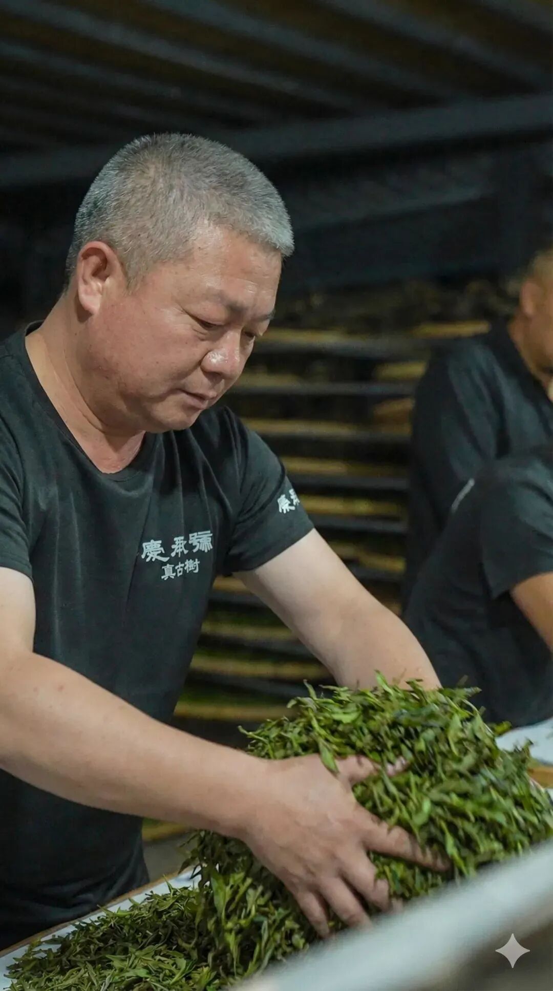 "要用太阳晒,不能用机器烘,烘出来的茶没有后期转化的空间。"