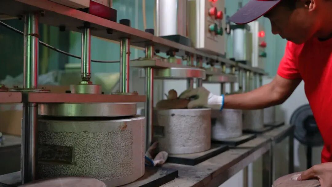 第五步:石磨压饼