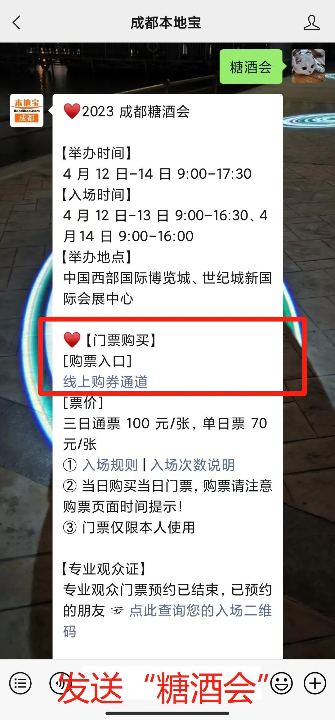 ?入口直达:点击下方链接并关注【成都本地宝】公众号,在对话框发送【糖酒会】进入购票入口,查看展馆展商名单,还能获取酒店展具体地点。