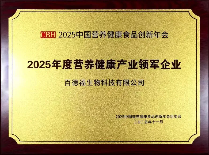 近日,在杭州国际博览中心召开的“2025营养健康食品大会暨第七届中国营养健康产业企业家年会”上,百德福生物科技有限公司从众多优秀企业中脱颖而出,荣膺大会重磅颁发的“2025年度营养健康产业领军企业”奖项。这一殊荣,不仅是对百德福多年深耕的肯定,更是对其行业引领者地位的有力认证。