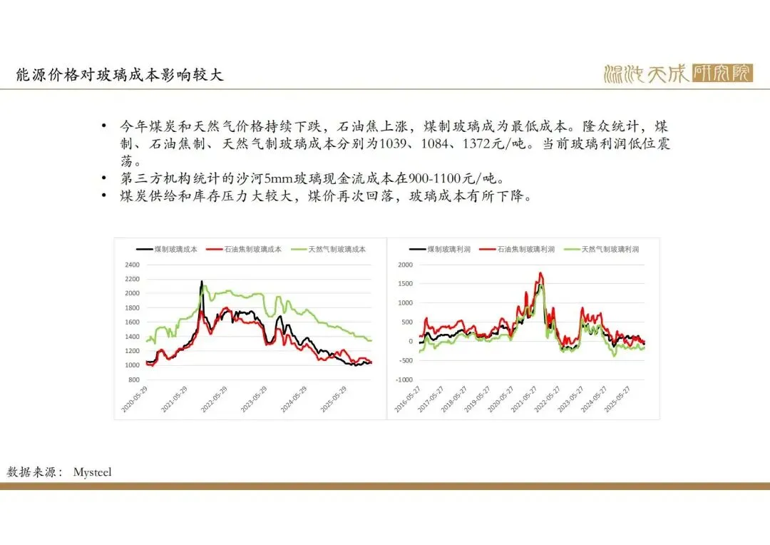当前矛盾:后市将逐步进入玻璃需求淡季,玻璃供给和库存压力较大,价格跌至历史低位,但仍有部分生产线将复产,市场情绪波动较大,盘面震荡偏弱。玻璃行业亏损,价格继续下跌空间有限,后市需要一个产能出清的过程,才能有持续上涨动力,产能出清可能有政策或亏损推动,或需要一个反复博弈,供需匹配的过程,市场情绪波动较大,建议根据产能出清和政策情况低位买入,2605合约建议在接近1000买入安全性更高。
