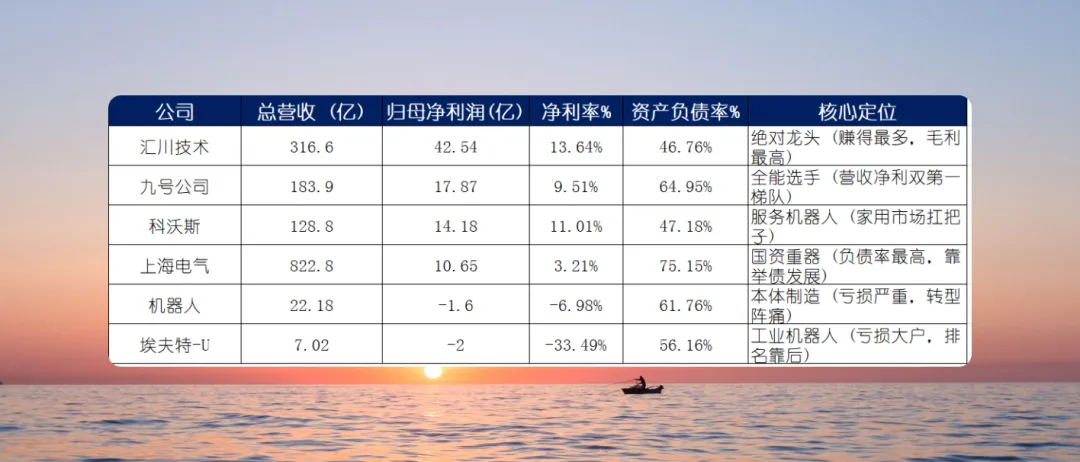 逻辑:这类公司直接面向消费者或特定场景(如扫地机器人、特种作业)。九号公司(平衡车、机器人滑板)营收破百亿,净利润也进入了第一梯队,说明其产品溢价和品牌力很强。中信重工虽然营收规模巨大,但其特种机器人业务主要服务于矿山等重工业,利润相对微薄。