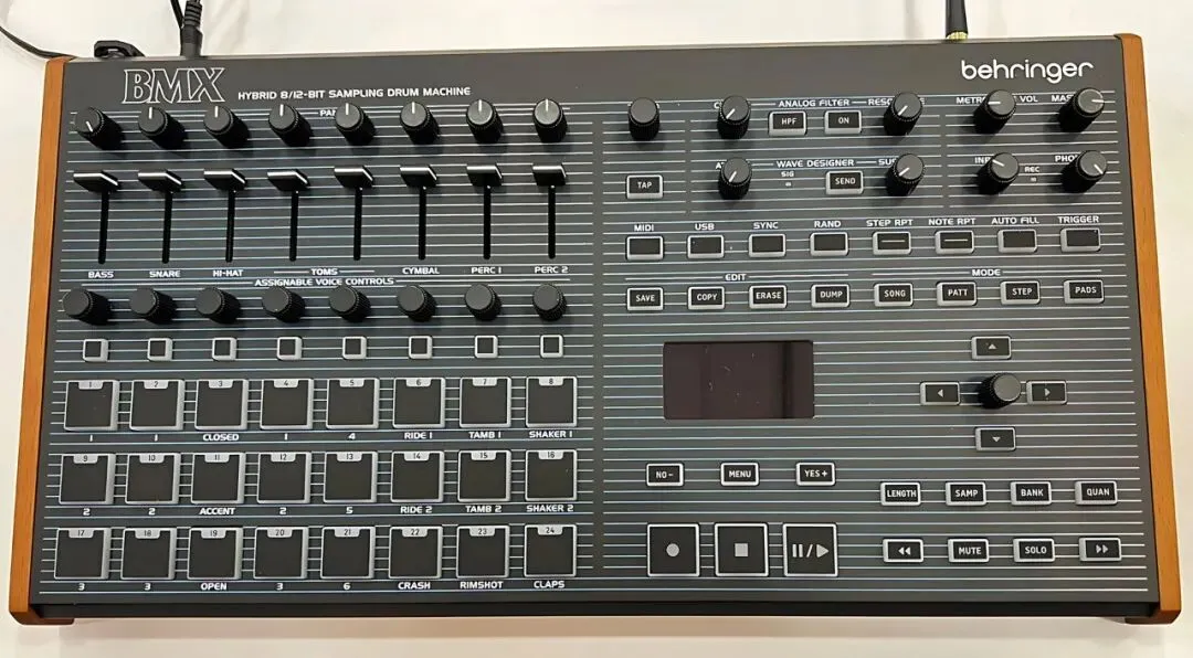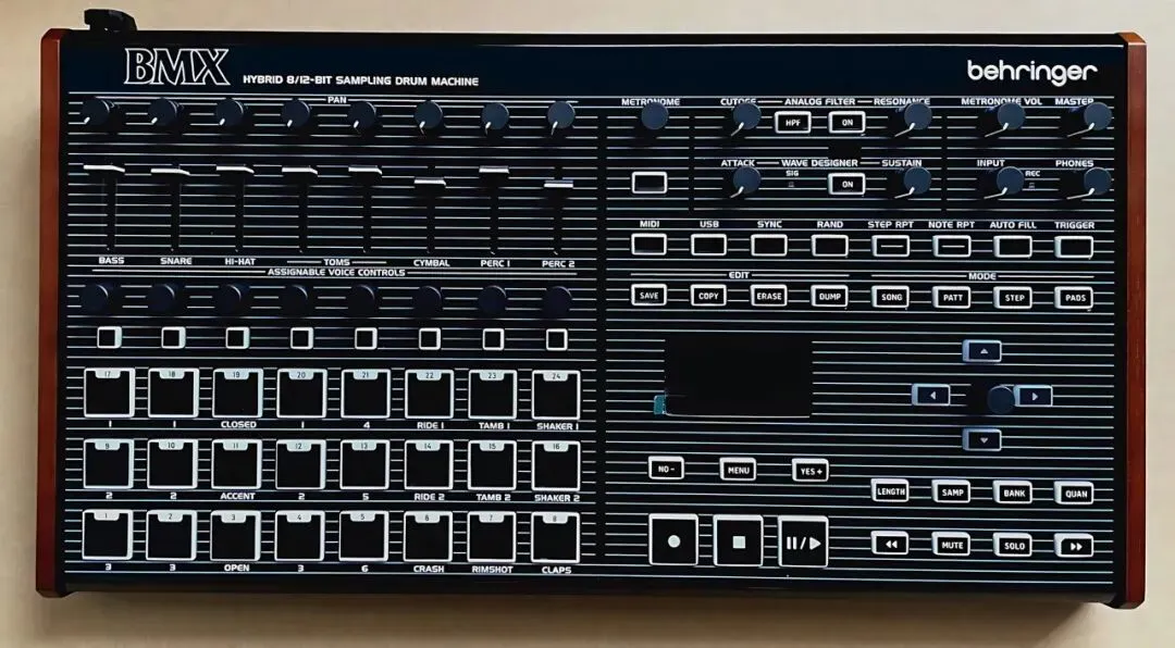 这款产品是对Oberheim DMX的重新演绎,其外形规格与Behringer大约一年前推出并广受好评的LmDrum单元相同。BMX的功能集与原版非常相似,并复刻了其用户界面。