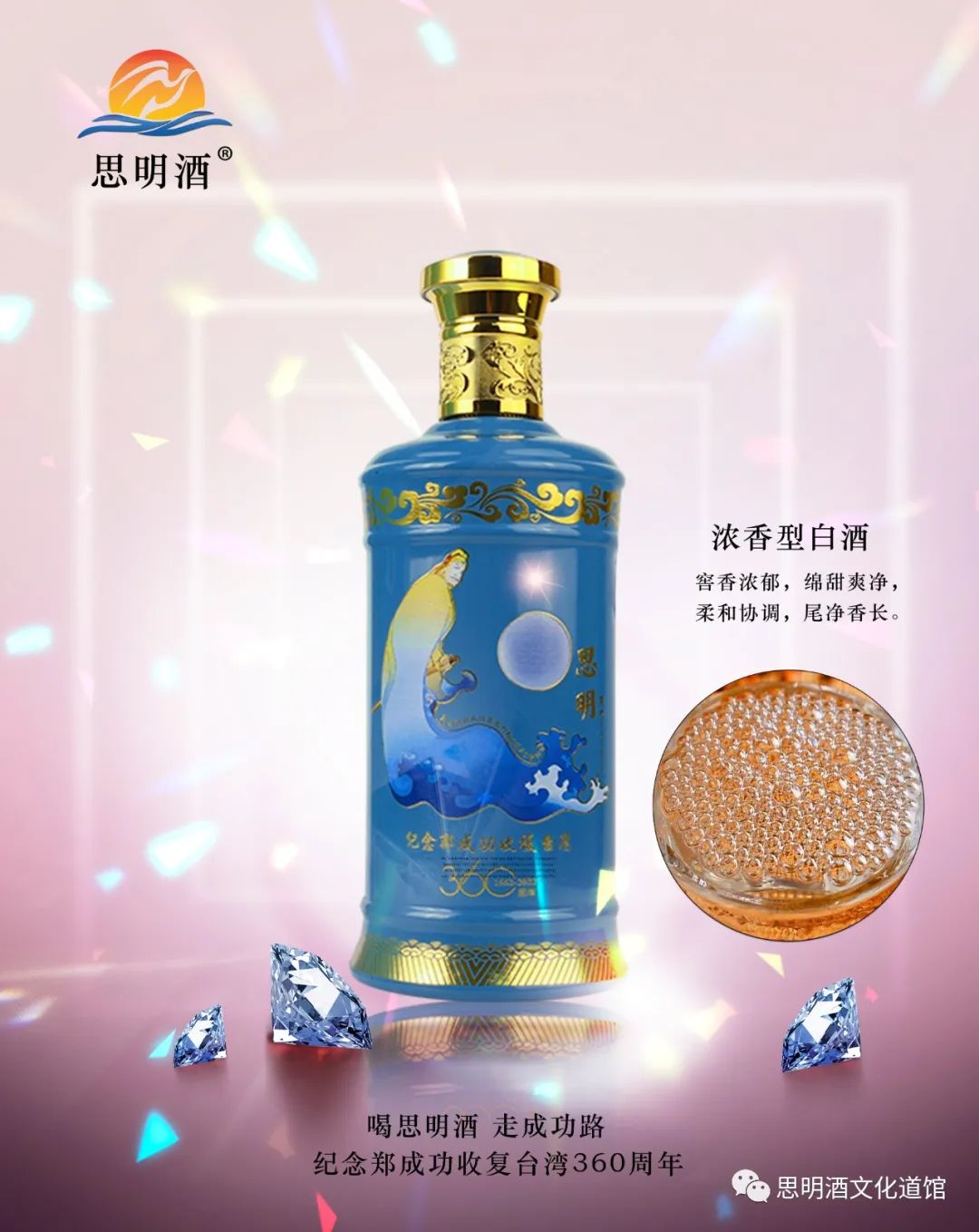 52°厦门思明酒,正宗古法精酿,传承百年古老白干酒酿造工艺精髓,质地晶亮,酒厚香远回甘,以郑成功图像为商标图案,远销至港澳、马来西亚等地。