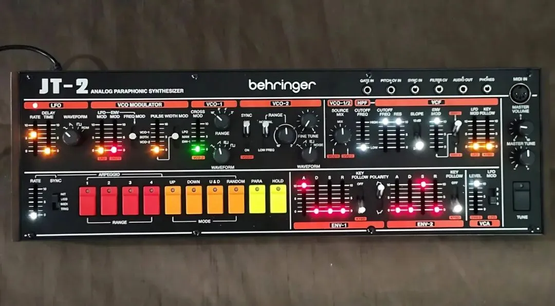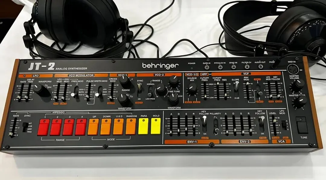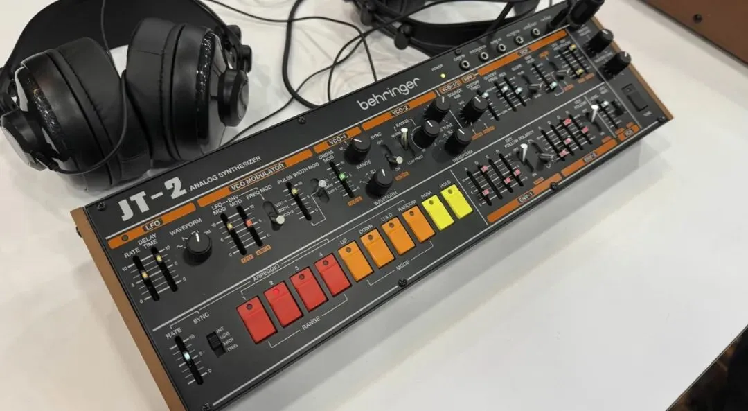 据我们在美国加州阿纳海姆NAMM 2026现场的线报,Behringer展台上已摆放出JT-2实物。你可能记得,JT-2是一款两声部桌面/Eurorack模块,能复现经典Jupiter 8合成器的两声部音色。