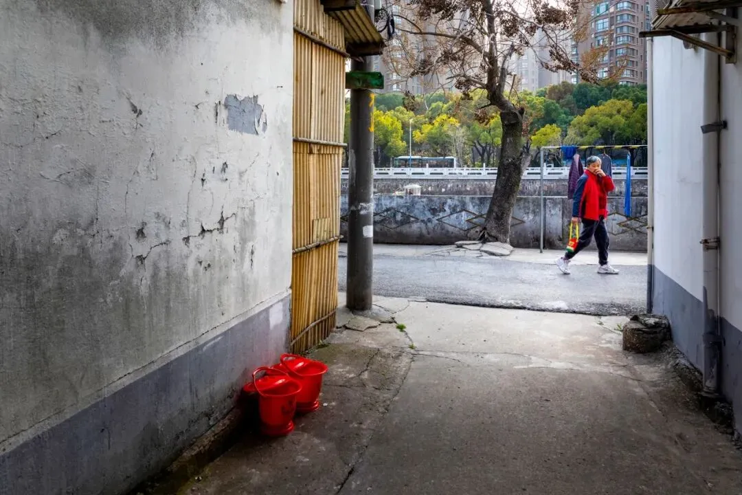2023年3月,一位居民沿着运河边经过西直街老小区。