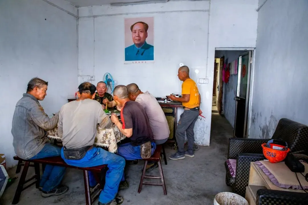 2025年5月29日,横林大桥东村出租屋中吃午饭的民工。