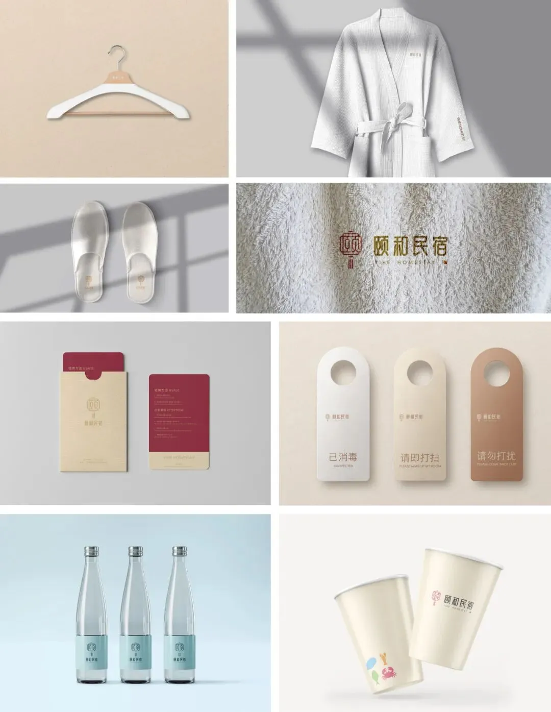标志以“颐”字融合灯笼、窗户、中国结等视觉元素,融入新中式、现代简约手法打造而成,灯笼是家的象征,还寓意着团圆、温暖与吉祥,藕合“颐养天和”的民宿品牌理念,标志以中国红为主色调,搭配深灰色中英文标准字与红色印章,彰显出颐和民宿是融汇东方美学与当代生活的精神栖居属性。