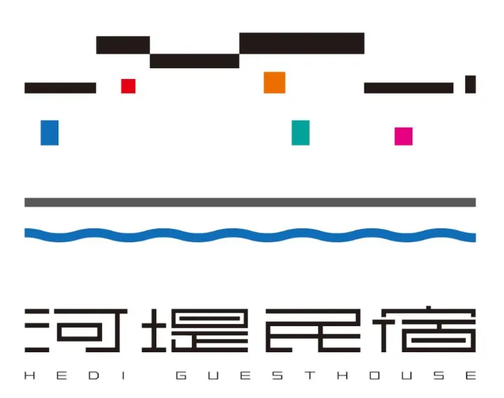 标志采用吴冠中大师绘画中的艺术语言,将河堤民宿错落有致的建筑群“天际线”、门窗、绿植以及民宿前的河堤、河水等周边自然环境,抽象转译为新中式极简视觉符号,精准传递河堤民宿“依水、傍堤、多彩”的品牌形象。整体设计通过建筑细节与自然场域的视觉融合,塑造出“推窗见堤、临岸观水”的沉浸式住宿氛围,契合都市人逃离喧嚣、亲近自然的休憩需求。