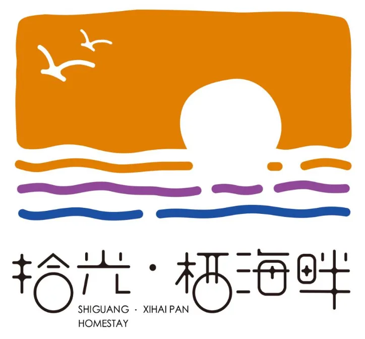 标志以“栖”为切入点,融合夕阳、海浪、海鸥等元素,将海边日落的浪漫与栖居的松弛感融入视觉符号。橙红色块晕染落日温柔,象征“拾光”,唤起游客对松弛慢生活的遐想;蓝紫海波纹与留白落日轮廓呼应,描绘出“栖海畔”的安然归宿感。海鸥元素为画面增添灵动性与叙事感,避免元素单调,精准传递民宿核心调性。