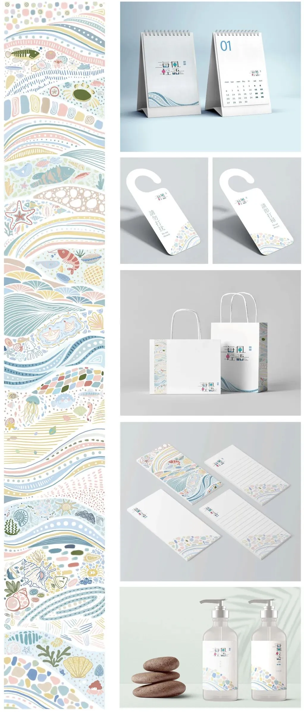 标志以声浪符号和海面灯光及其倒影、海边建筑及其倒影等元素为核心创意点,融合海浪与民宿建筑的意象形态,巧妙传达出“听浪”与“伴海”的视觉语言。标志紧扣“听浪枕海风,伴海享闲情”核心理念,直观传递品牌调性,精准唤醒人们对滨海悠闲度假时光的美好感知,清晰凸显民宿滨海度假的核心属性。