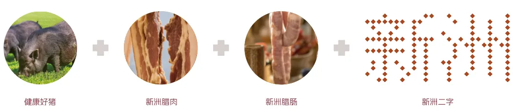 标志融合新洲健康生猪、腊肠、腊肉等元素,与“新洲”二字相连共生而成。活动海报采用“国潮扁平风”设计风格,聚焦品牌活动视觉叙事,以插画的形式生动讲述新洲腊味“从喂养到成品”的完整诞生脉络,传递 “慢腌岁月味,细品新洲情” 的核心理念,唤醒人们对时光风味的温暖感知。