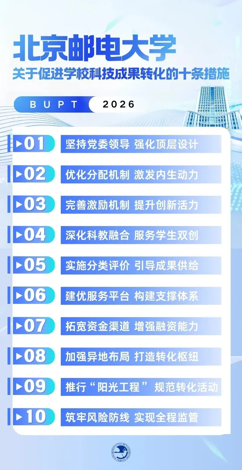 为全面贯彻习近平新时代中国特色社会主义思想,深入落实党的二十大及二十届历次全会精神,紧密围绕国家重大战略需求和区域高质量发展,服务学校“双一流”建设目标,着力打通科技成果转化链条堵点,以激发教师创新活力为核心,以提升成果转化专业服务能力为重点,加快构建符合科技创新规律、适应市场经济要求、具有北邮特色的科技成果转化体系,制定本措施,简称“转化十条”。