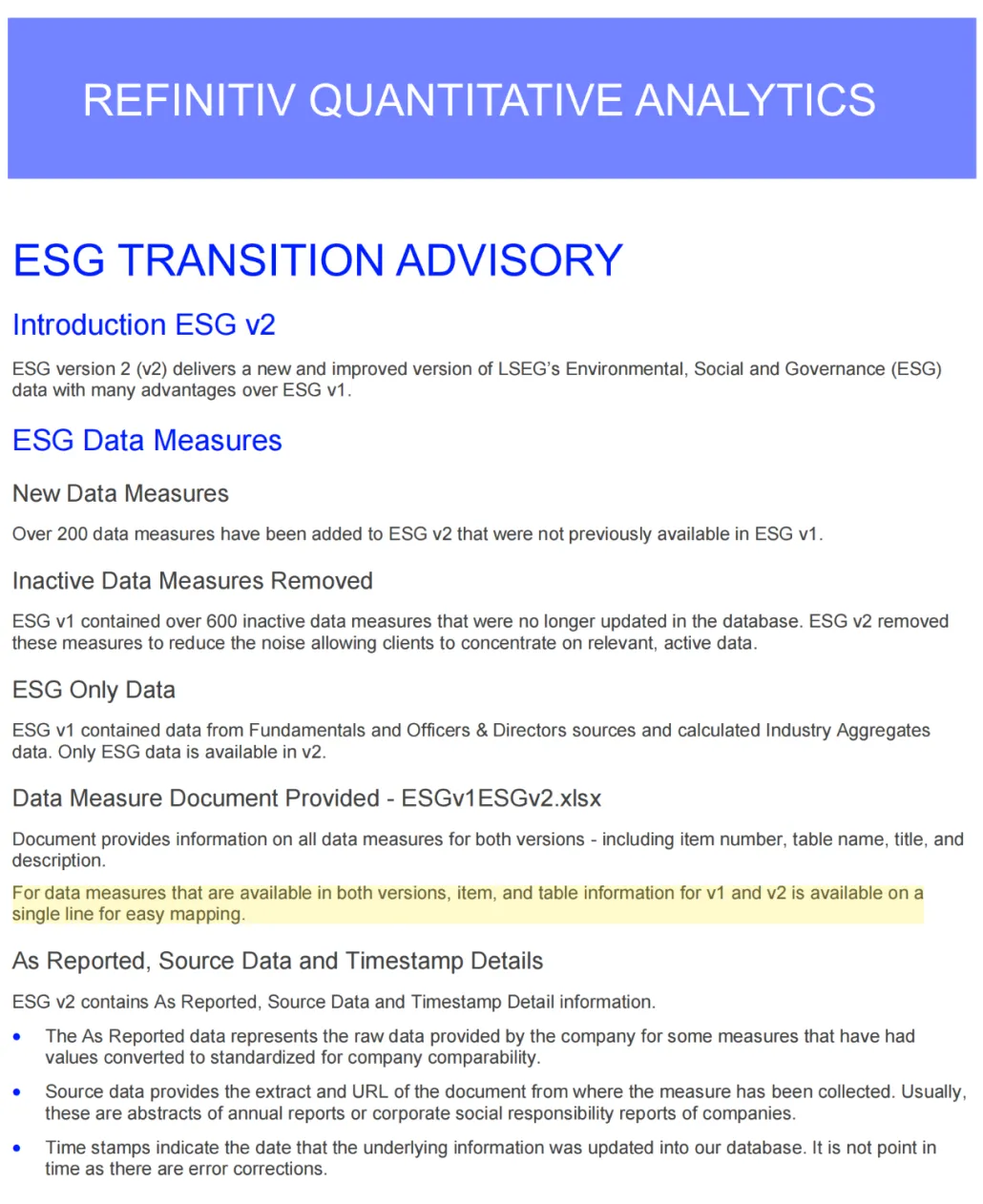 Asset4 V2 ESG数据库是 Refinitiv 推出的一个用于衡量企业环境、社会和治理(ESG)表现的数据库。