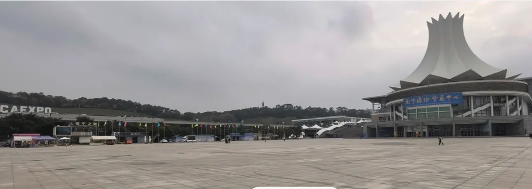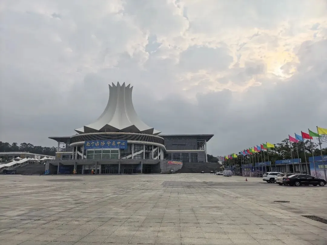 当我站在南宁国际会展中心的广场上,抬头望向象征着广西各民族团结的朱槿花造型的穹顶,向阳花开,美不胜收。