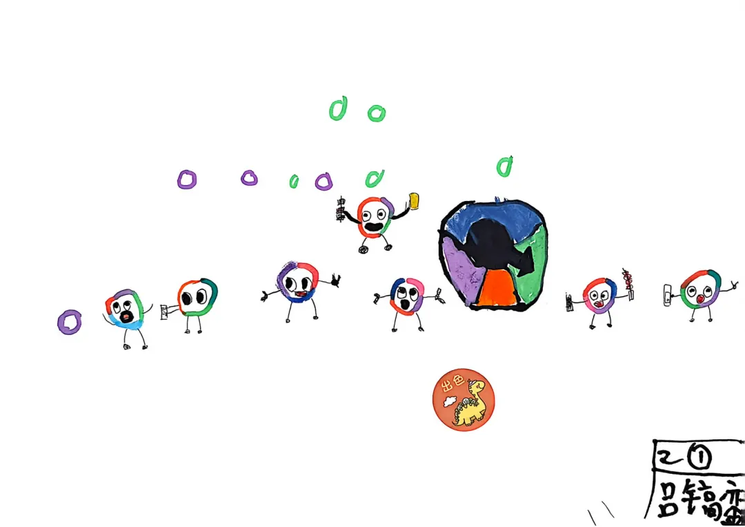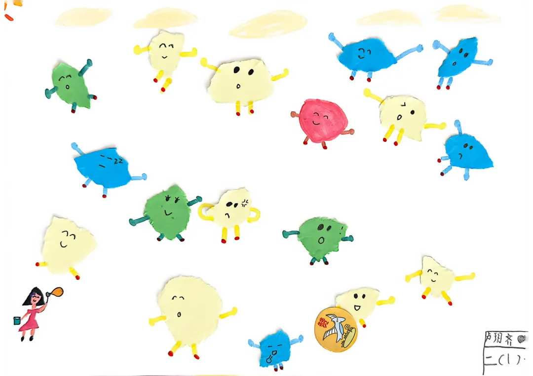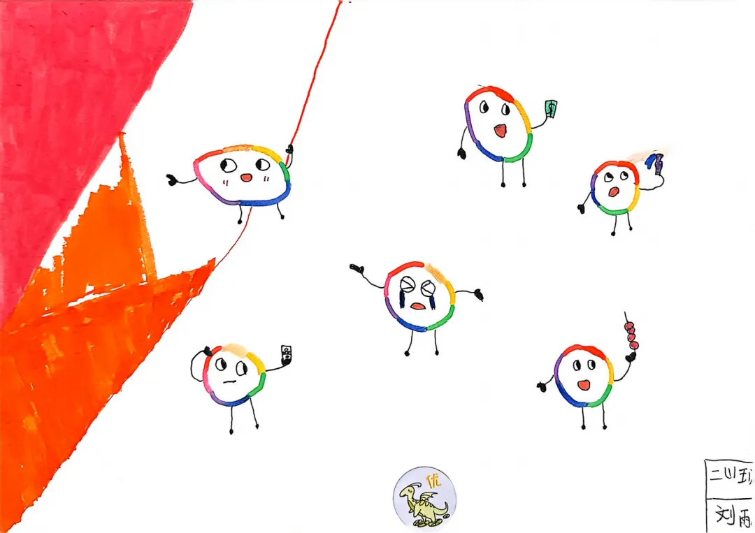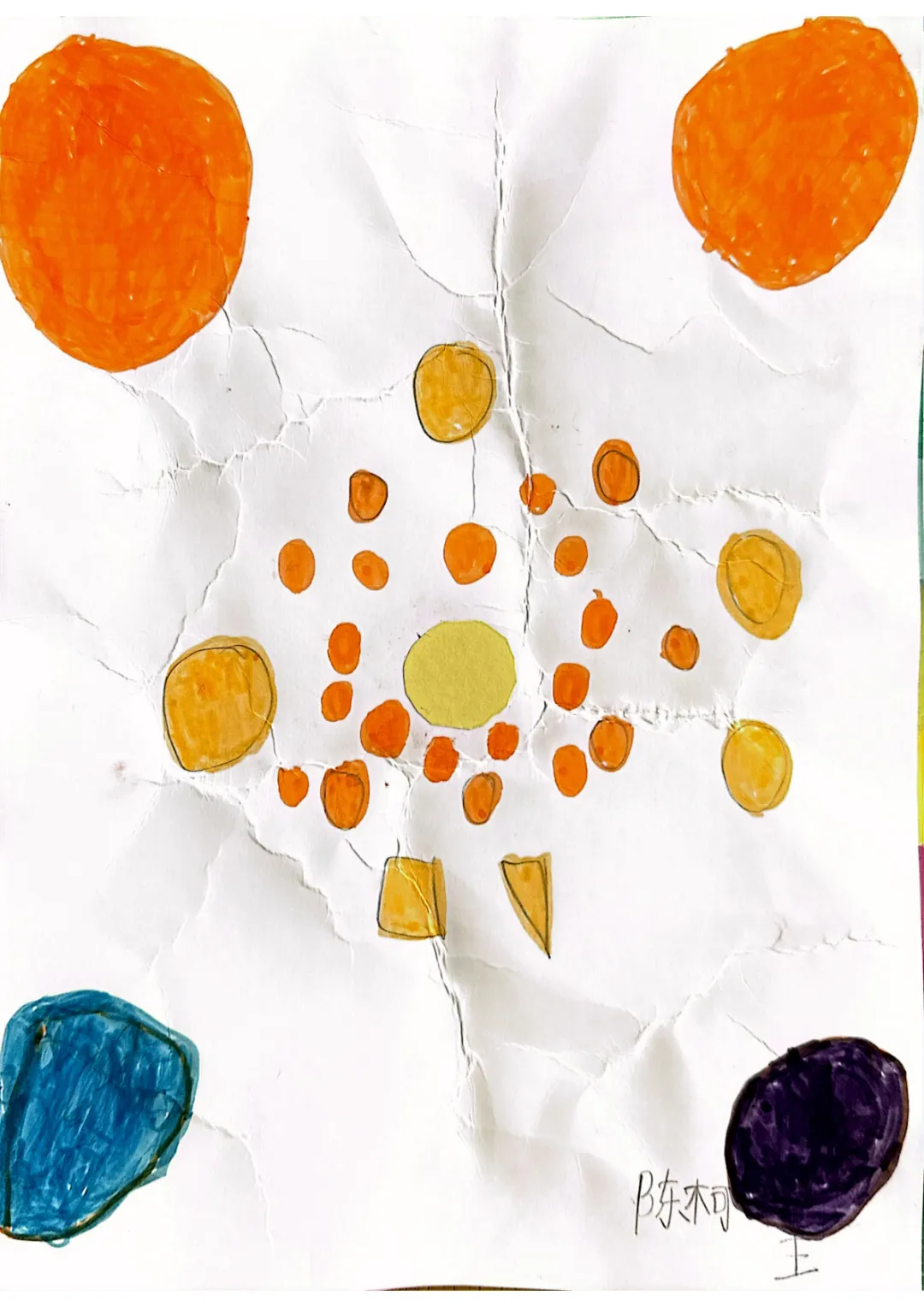 泡泡是生活里最灵动的“色彩精灵”,课堂上我们深耕“观察+实践”双维度:从“泡泡本无色,光照出七彩”的科学原理入手,带学生在吹泡泡游戏中观察阳光折射出的橙、紫、蓝等色彩变化;结合2022版艺术课程标准“造型·表现”核心素养要求,引入拓印、撕贴、水墨等多元技法,鼓励学生大胆用色、自由创作,还原泡泡的“多彩与透明”质感。