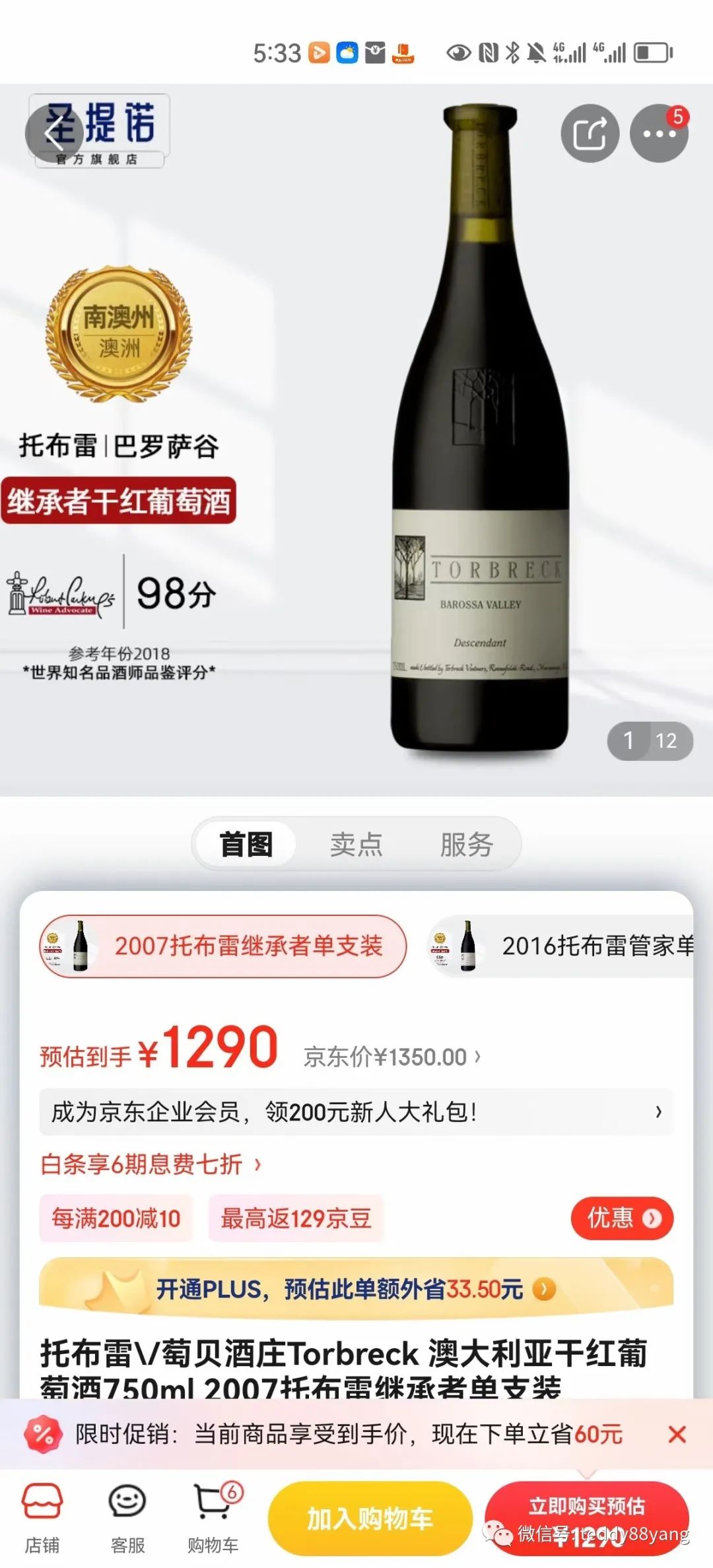 2018年拖布雷小农庄完税货!338块/瓶,不散卖,一箱6瓶,广东省内包邮!