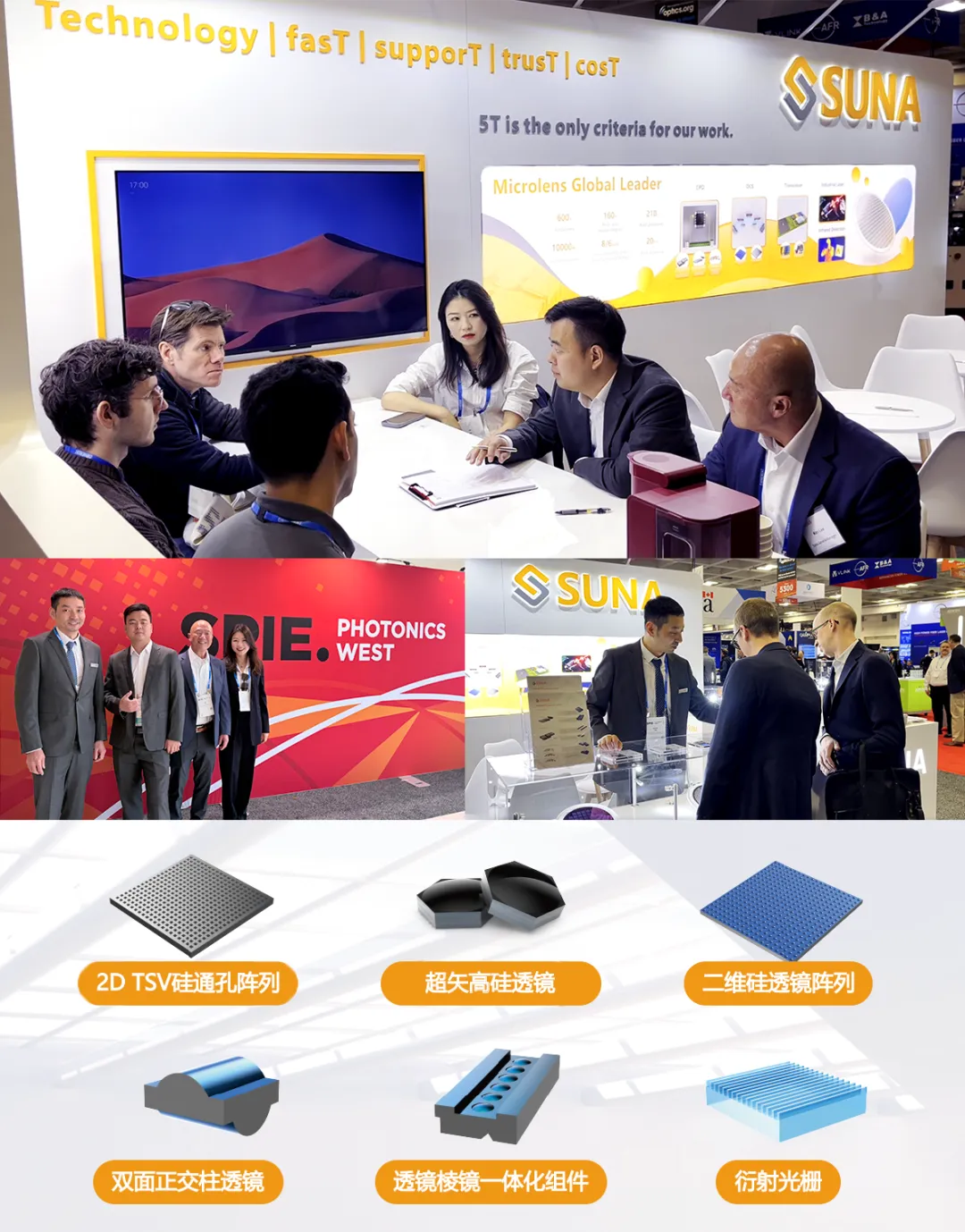 2026年1月20日,北美规模最大、最具影响力的光电领域盛会之一SPIE Photonics West 2026在旧金山Moscone展览中心正式启幕。作为全球硅微透镜行业的领军者,苏纳SUNA携微透镜阵列、硅通孔等全系列核心光学器件参展,以自主研发的硬核技术,精准对接算力光互联领域的革命性需求。