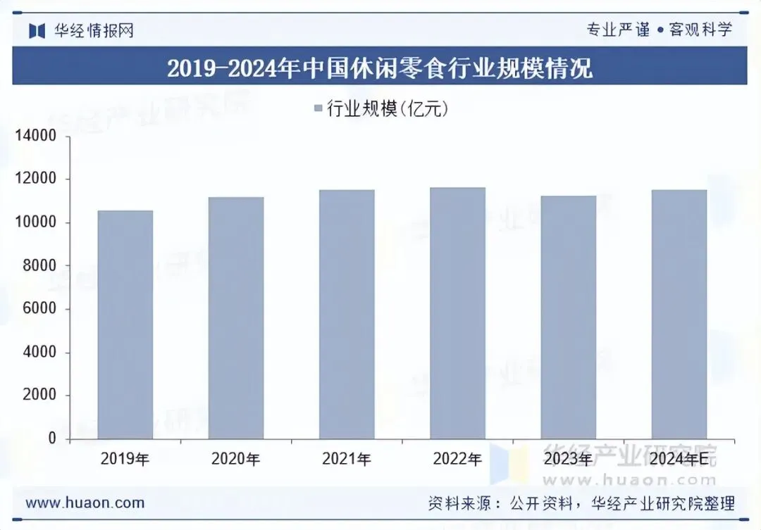 休闲零食是指人们在非正餐时间食用的各类食品,涵盖糖巧、饼干、坚果炒货等多个品类,坚果炒货作为其中的重要分支,广泛用于日常解馋、追剧、办公等场景,坚果炒货更是休闲零食领域的第三大支柱,其市场份额仅次于糖果巧克力、烘焙食品。2023年,中国休闲零食行业规模约为11247亿元。