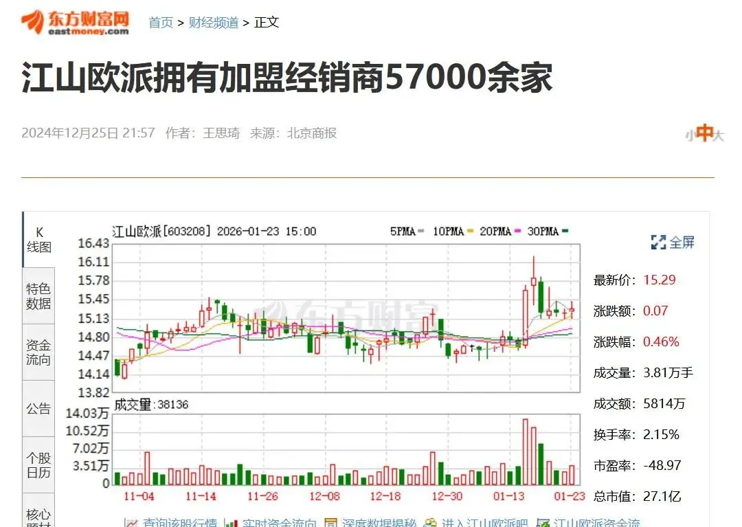 从2024年盈利1.09亿,到2025年前三季度亏4149万并关停基地,再到2025全年预亏超1.8亿——江山欧派在一年内的业绩“跳水”,勾勒出一条陡峭的下行曲线。