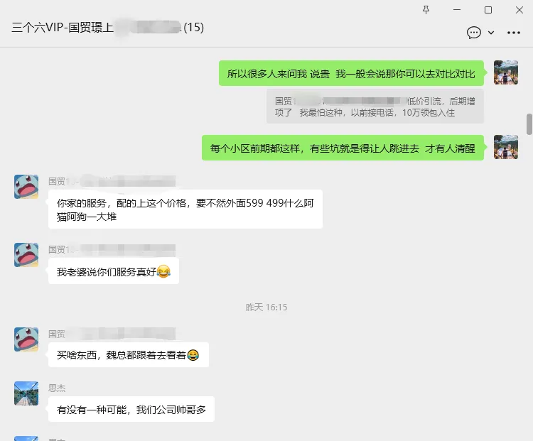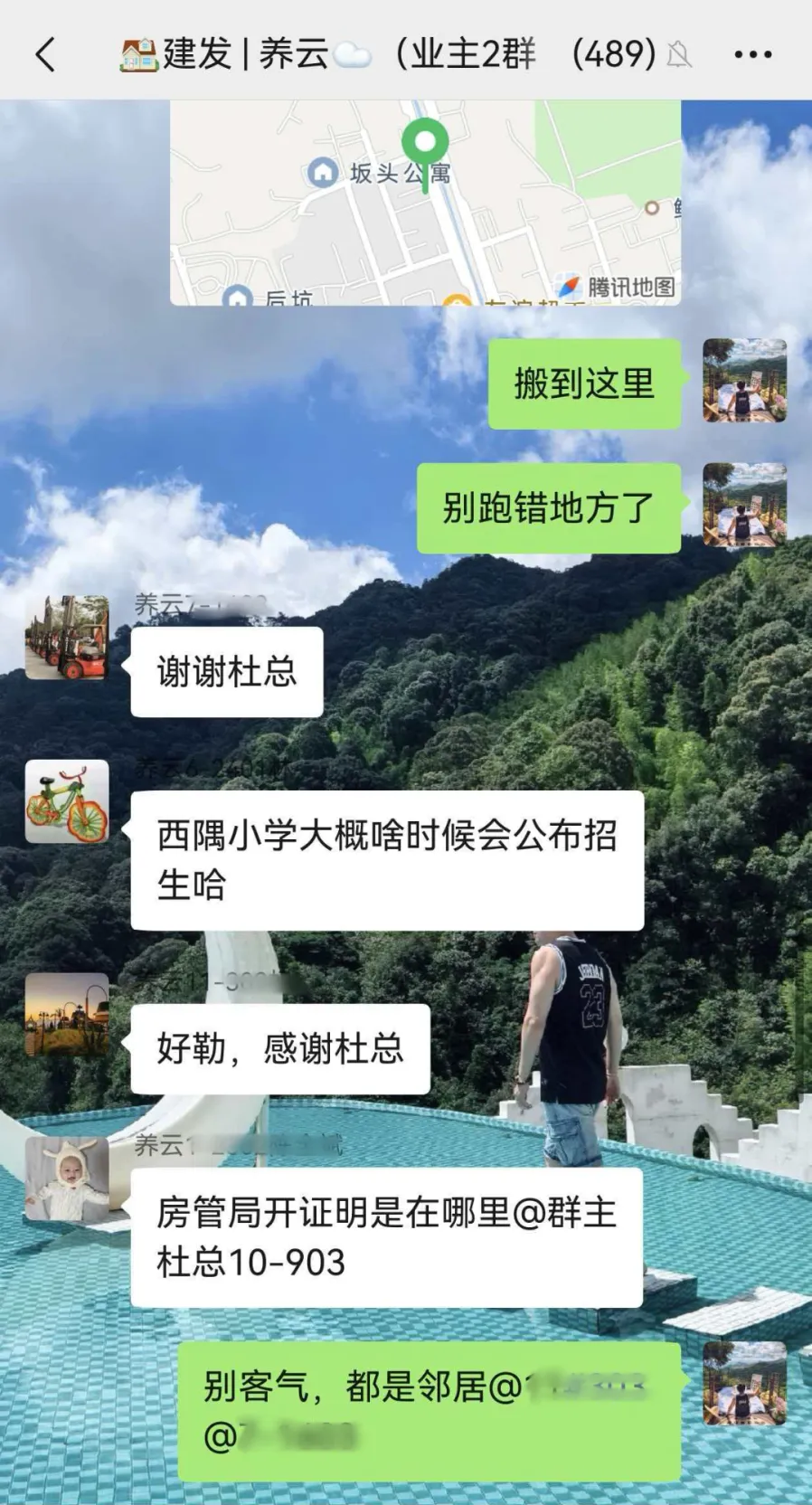 所有小区业主群里,老总无偿分享买房后不同周期的注意点、知识点,针对邻居们的问题或者疑惑,第一时间解答。
