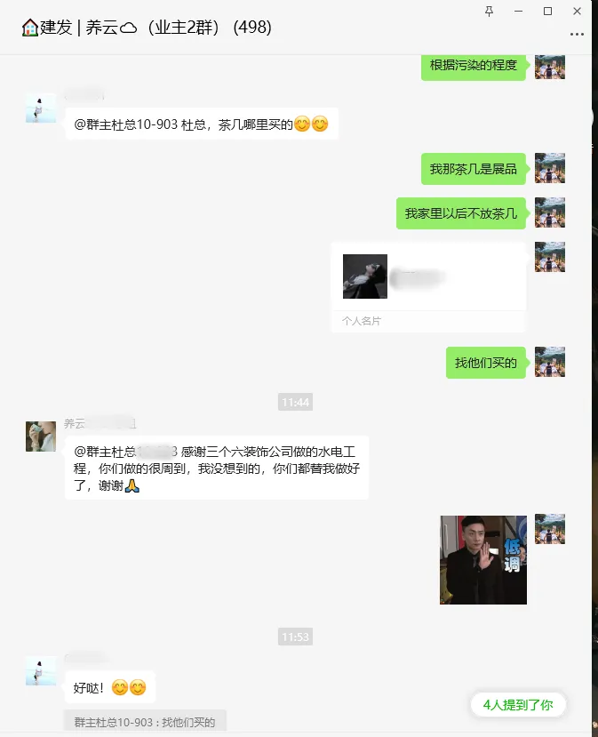 而与此同时,他们也成了很多业主采购主材、装修设计的咨询对象,以亲身体验结合专业经验,给邻居们最好的也是最实用的建议,因为他们想与业主共建的不仅仅是装修的服务,更是一个家的温度。