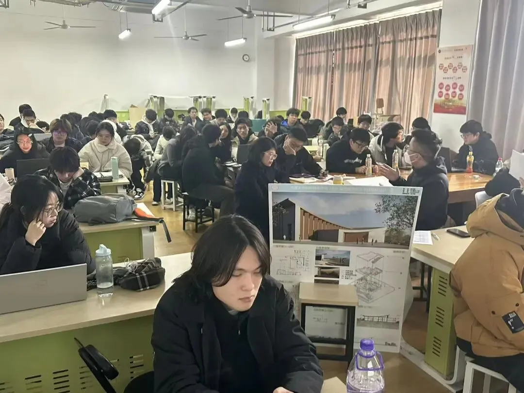 本次期末设计展评现场,建筑学学子们依次登台,将自己的设计方案娓娓道来。从幼儿园到公关建筑的转型改造,到某集团学习中心的设计,从建筑形态的创意表达,到绿色技术的融合应用,每一份作品都凝聚着同学们数月的调研、推敲与打磨。