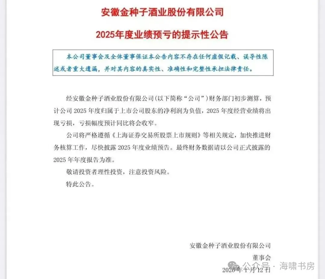 1月11日 金种子酒业绩预告:预计2025年度归母净利润为负值,2025年度经营将出现亏损,亏损幅度预计同比将会收窄(2024年度-2.58亿)。