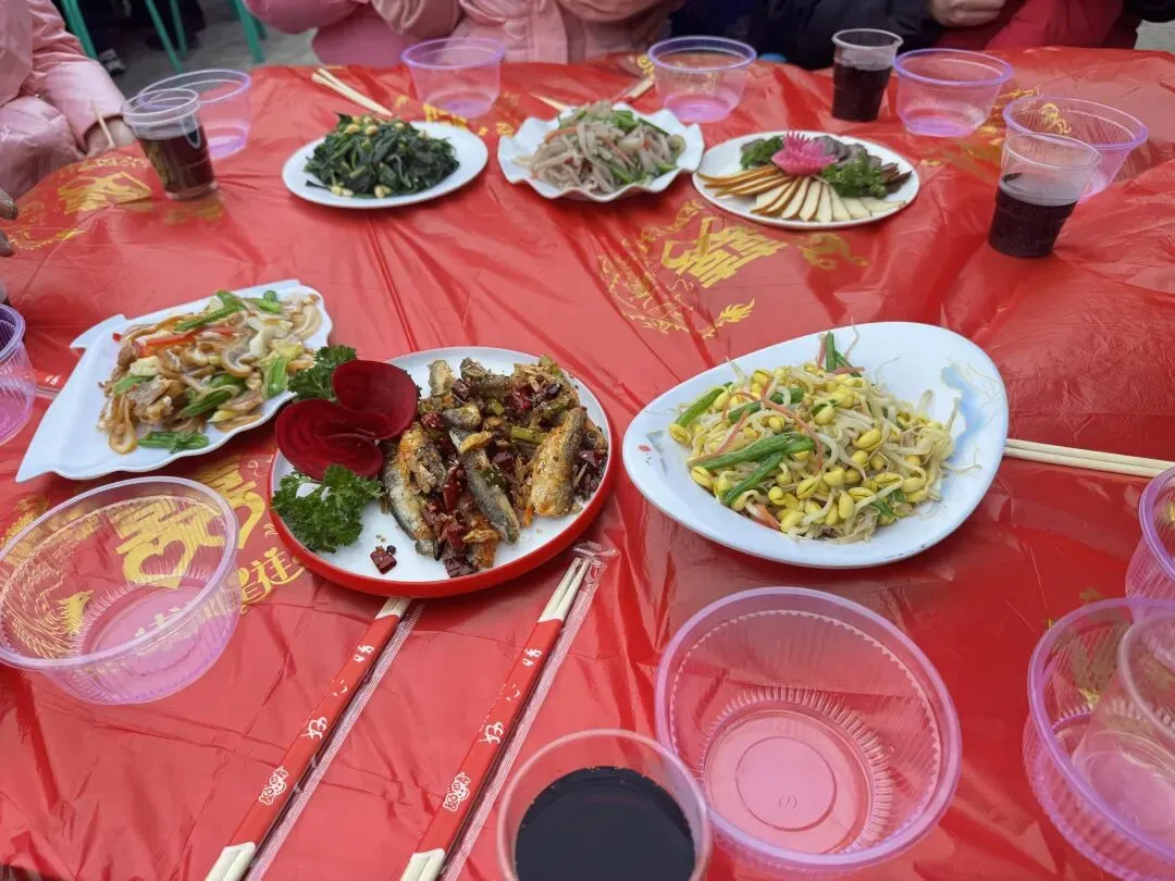 流水席一碗接一碗地端上来,客人们吃得酣畅淋漓,纷纷竖起大拇指:“没想到免费的饭能这么丰盛,全是家乡的味道!”