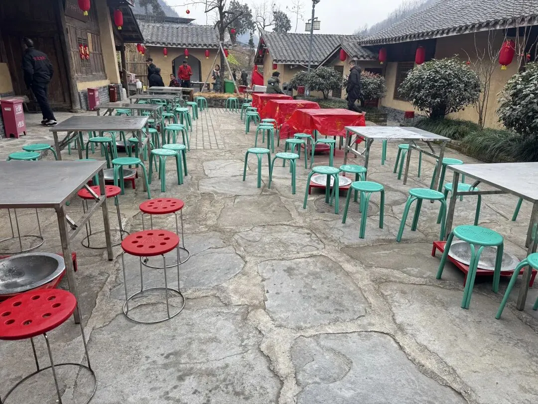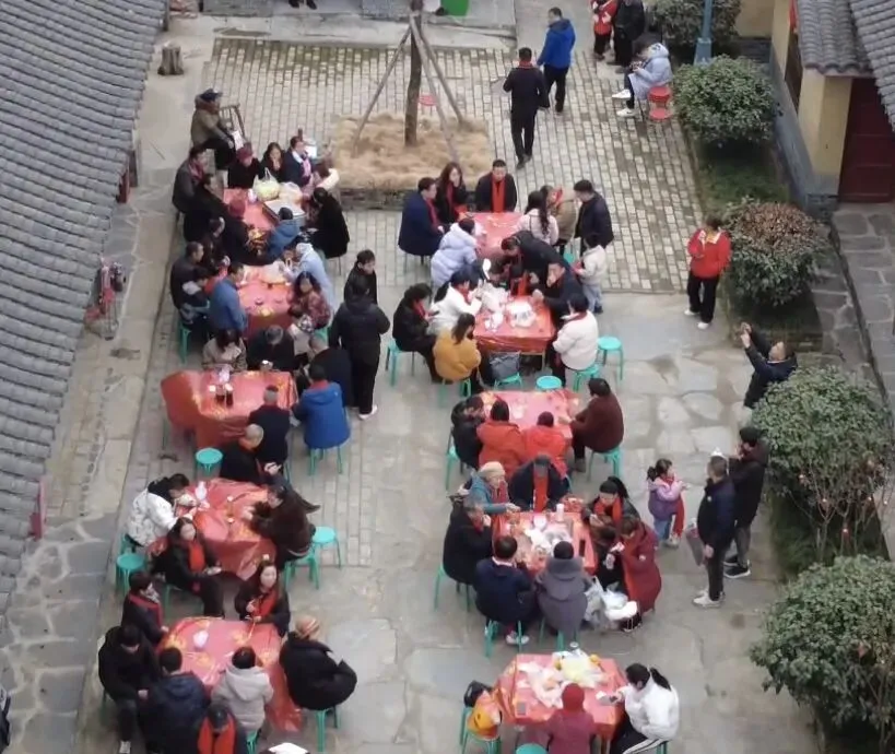 最让人期待的,莫过于陈家院子为所有来客准备的免费流水席!“开席咯——”随着一声吆喝,后厨的师傅们端着菜快步而出,6凉6热共12道陕南硬菜,瞬间摆满了一张张圆桌,香气直钻鼻腔!