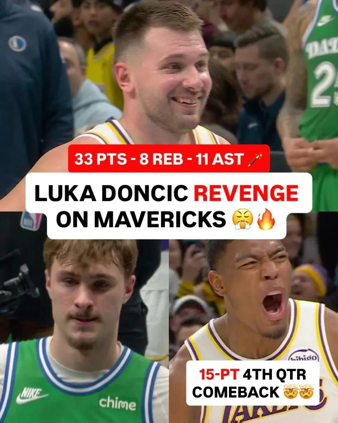 卢卡东契奇本赛季场均33.4分,7.8个篮板,8.7次助攻。 勒布朗詹姆斯场均22.5分,6.0个篮板和6.9次助攻。里夫斯场均26.6分,5.2个篮板和6.3次助攻。
