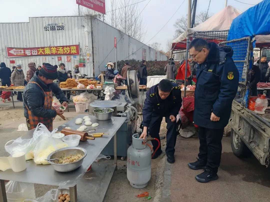 将燃气使用安全作为巡查重点,针对餐饮等使用燃气的商户,逐一核查液化气钢瓶年检情况、存放位置是否合规,仔细检查软管老化破损及接口密封情况,排查泄漏隐患。对违规使用行为当场制止、责令整改,现场讲解安全使用及应急处置知识,严防燃气安全事故发生。