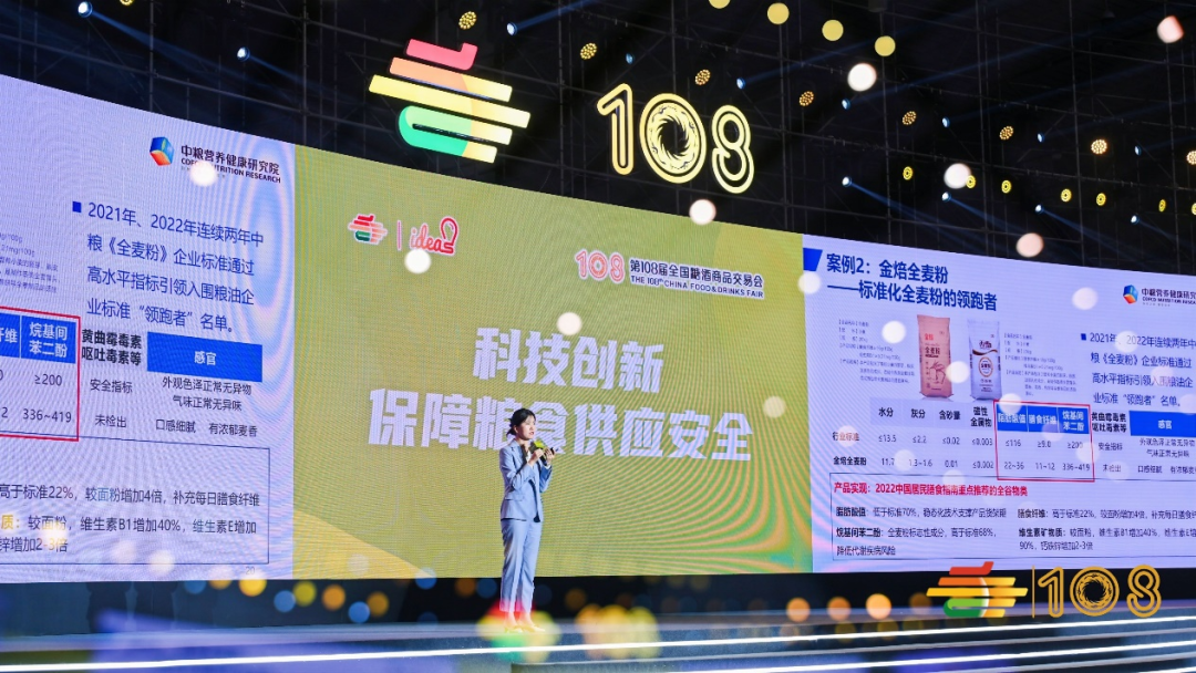 中粮营养健康研究院党委委员、副院长郭斐带来《科技创新在粮食供应中的作用》主题演讲,从“大食物观”切入,分析了消费者真正的饮食现状和餐桌结构变化,号召大家一起去推动食品产业的中国式现代化高质量发展。