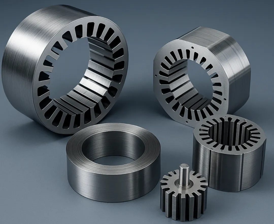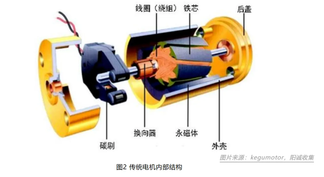 首先讲讲空心杯电机,要理解什么是空心杯电机,先对电机的铁芯有个概念,传统电机的线圈绕组就是绕在铁芯上的,铁芯一般是用一片片的硅钢片叠成,线圈通过铁芯槽进行缠绕。传统直流电机铁芯绕组充当转子,通电后产生磁场,一般在铁芯外围布置永磁体作定子,通过磁场反应使得铁芯绕组转动。大概样子长下面这样