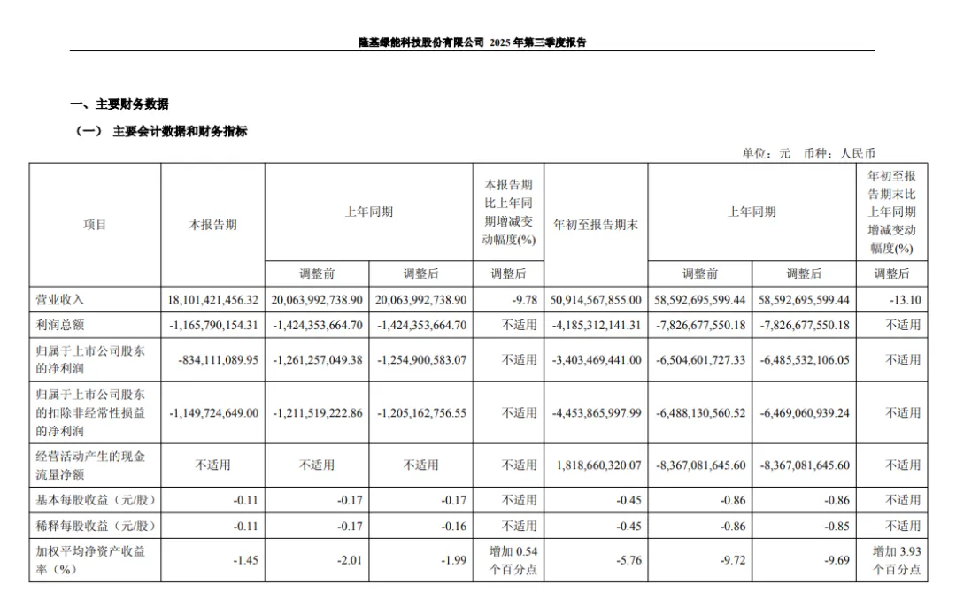 10月30日,隆基绿能发布2025年三季度财务报告。三季报显示,1月至9月公司实现营业收入509.15亿元,其中第三季度实现营收181.01亿元,实现连续两个季度大幅减亏。