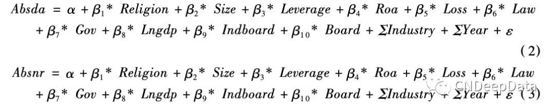 2.宗教影响与盈余管理:参照叶康涛等( 2007) 和潘越等( 2010) ,构建多元回归模型( 2) 和模型( 3) ,检验宗教传统对公 司盈余管理行为的影响: