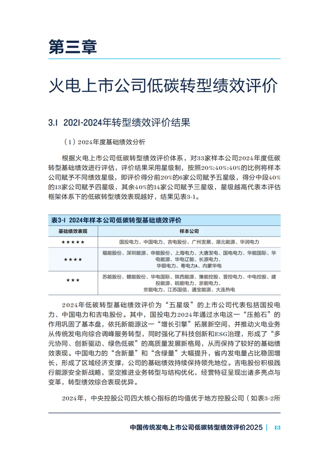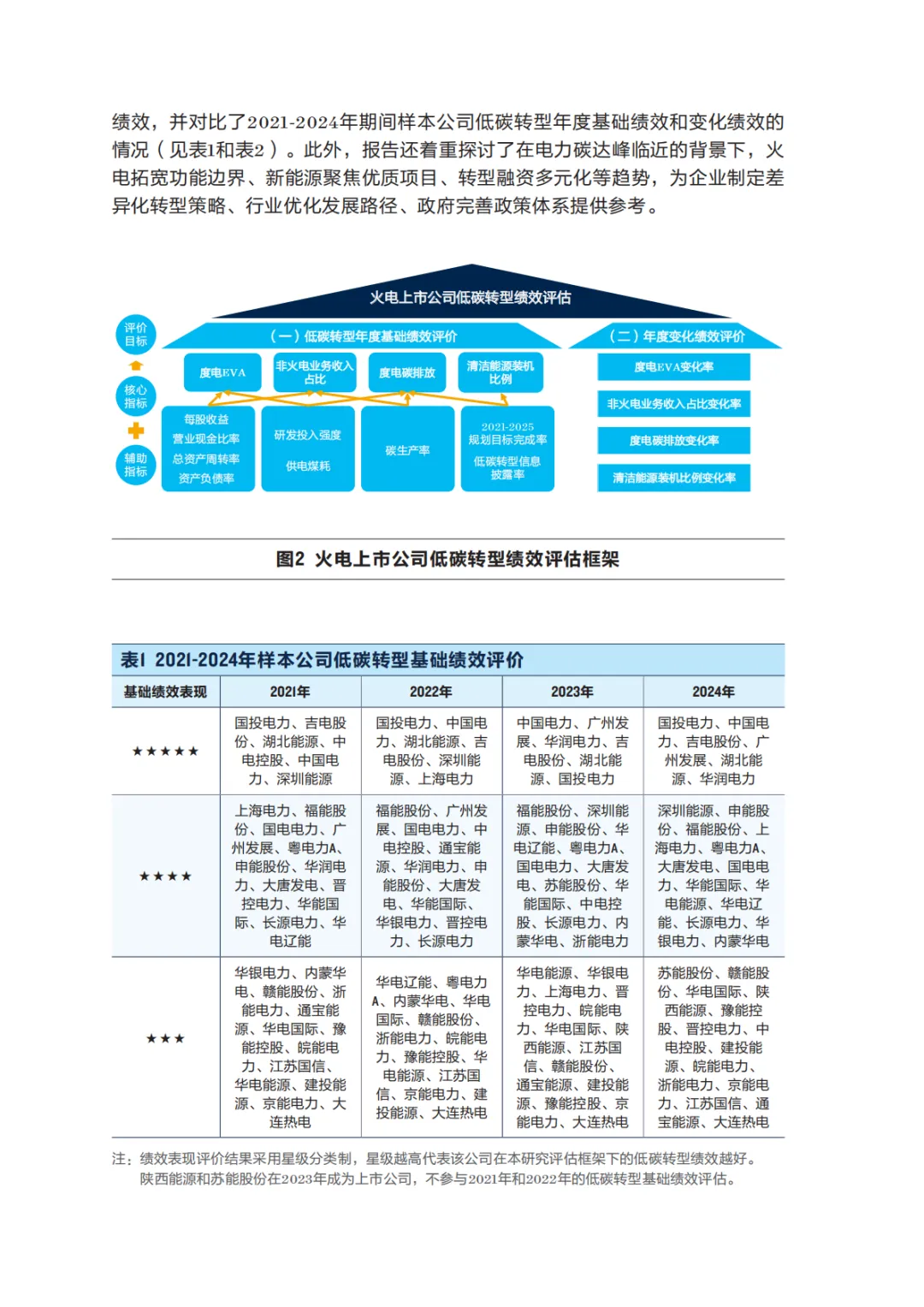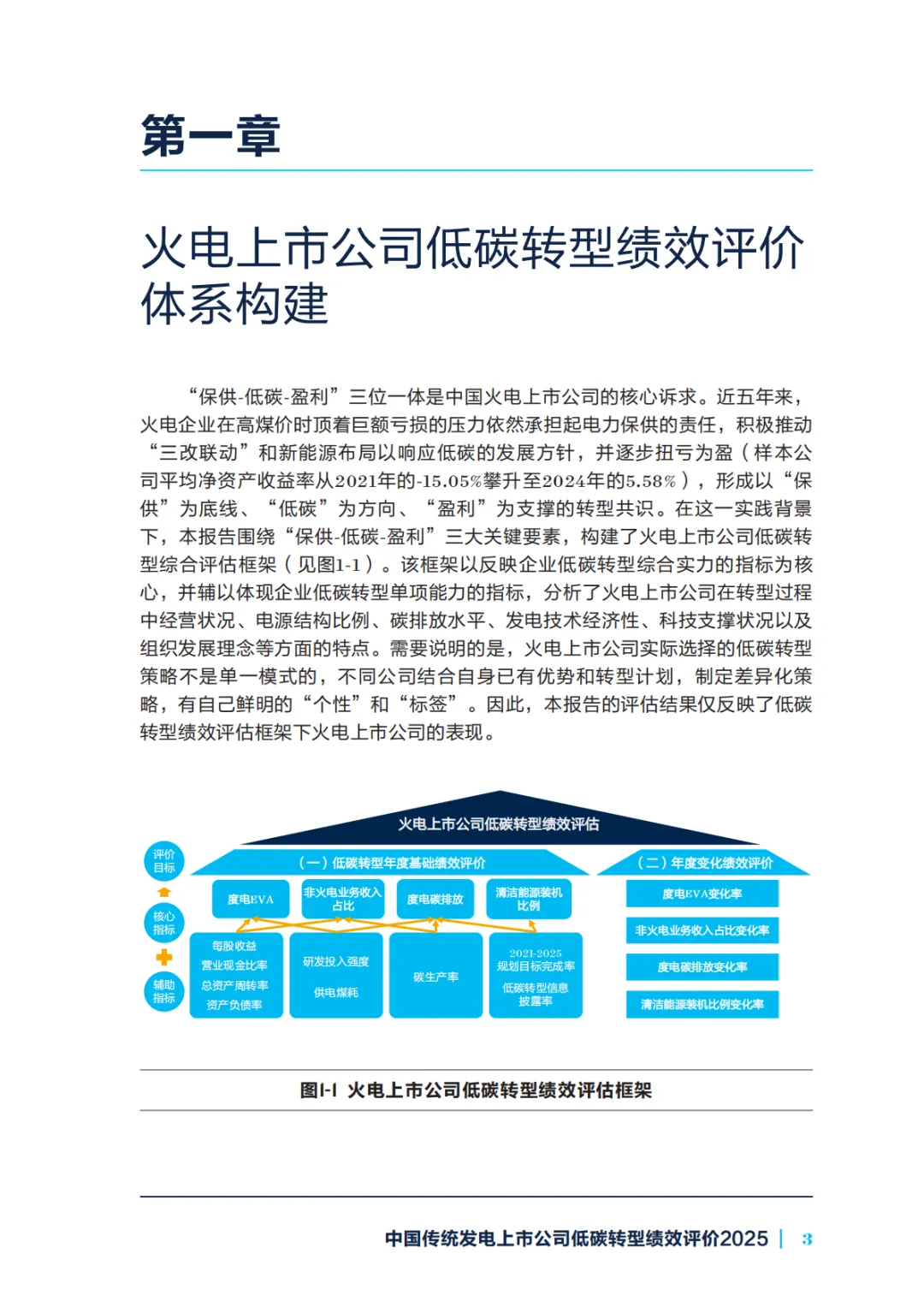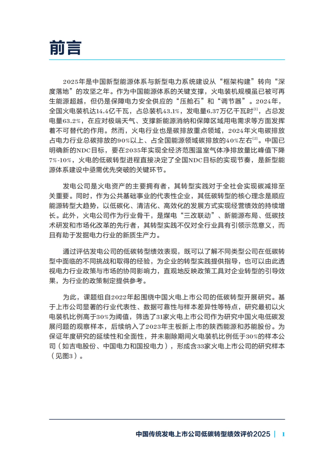 火电是推进全社会碳减排的重点领域,而传统发电上市公司作为我国火电资产的主要拥有者,也是践行煤电“三改联动”、新能源布局、低碳技术研发、市场化改革的先行者,对电力低碳转型具有引领示范作用。本报告选取火电上市公司1作为传统发电上市公司的代表进行研究,通过评估火电上市公司的低碳转型绩效,既可以梳理不同类型公司在低碳转型中面临的不同挑战和取得的经验,发掘电力行业新质生产力,也可以透视电力行业政策与市场的协同影响力,直观反映政策工具对企业转型的引导效果。