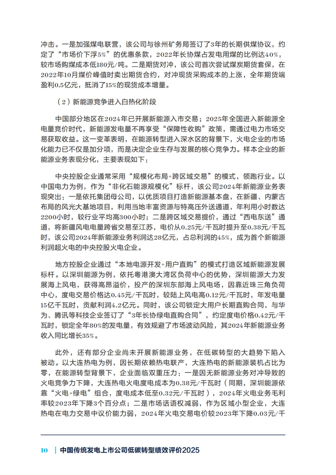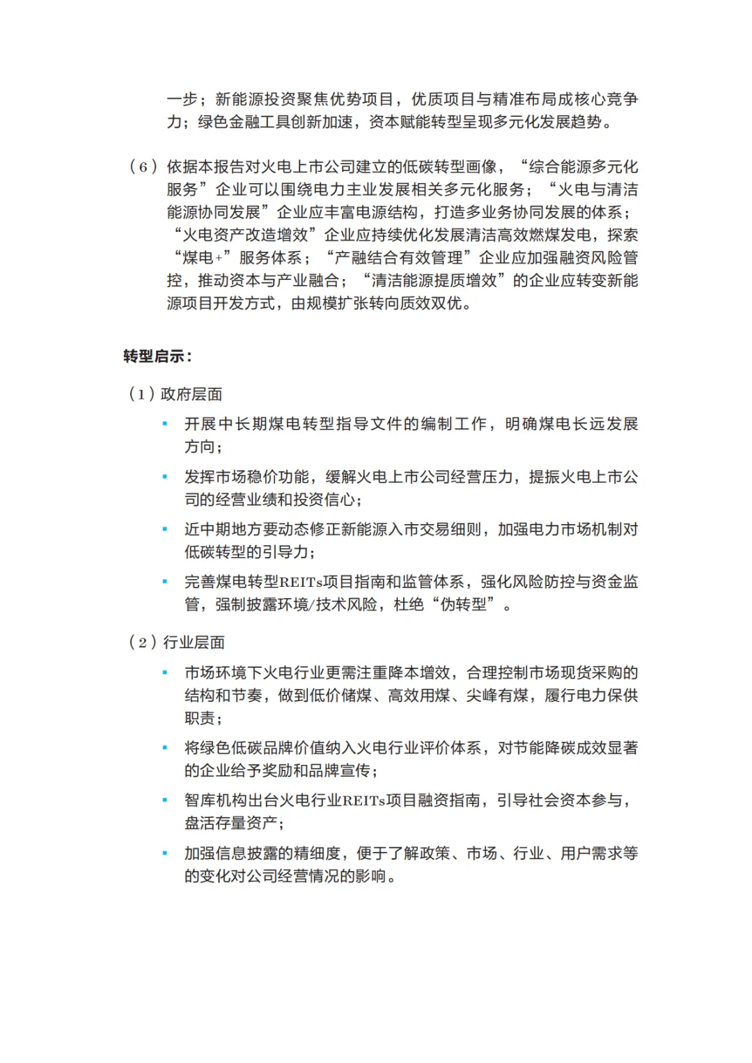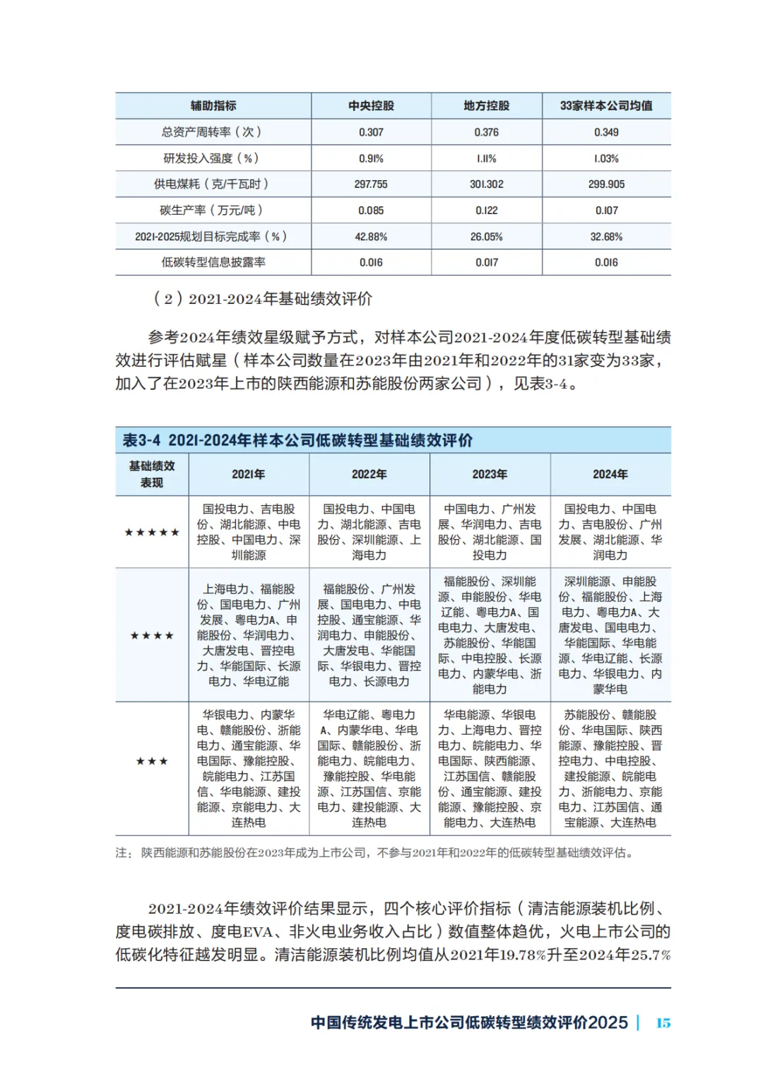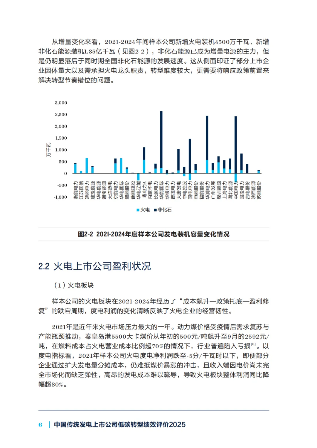 火电是推进全社会碳减排的重点领域,而传统发电上市公司作为我国火电资产的主要拥有者,也是践行煤电“三改联动”、新能源布局、低碳技术研发、市场化改革的先行者,对电力低碳转型具有引领示范作用。本报告选取火电上市公司1作为传统发电上市公司的代表进行研究,通过评估火电上市公司的低碳转型绩效,既可以梳理不同类型公司在低碳转型中面临的不同挑战和取得的经验,发掘电力行业新质生产力,也可以透视电力行业政策与市场的协同影响力,直观反映政策工具对企业转型的引导效果。